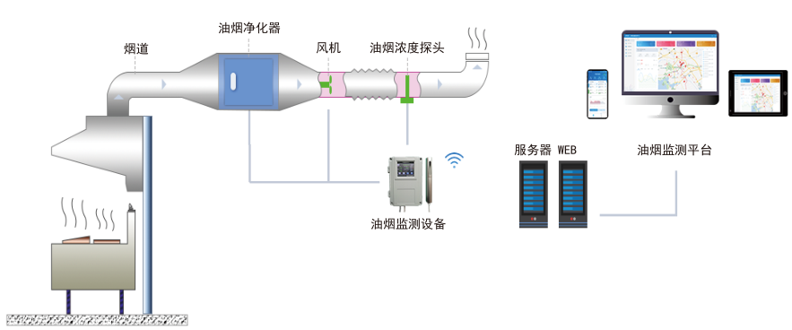 为了弥补现存餐饮行业在烟油监测上的漏洞,同时便利监管部门的监察,安科瑞油烟监测云平台应运而生。油烟监测模块通过2G/4G与云端平台进行通信和数据交互,系统能够对企业餐饮设备的开机状态、运行状态进行监控;实现开机率监测,净化效率监测,设施停运告警,待清洗告警,异常告警等功能;对采集数据进行统计分析、排名等统计功能;较之传统的静电监测方案,更具安全性和实效性。