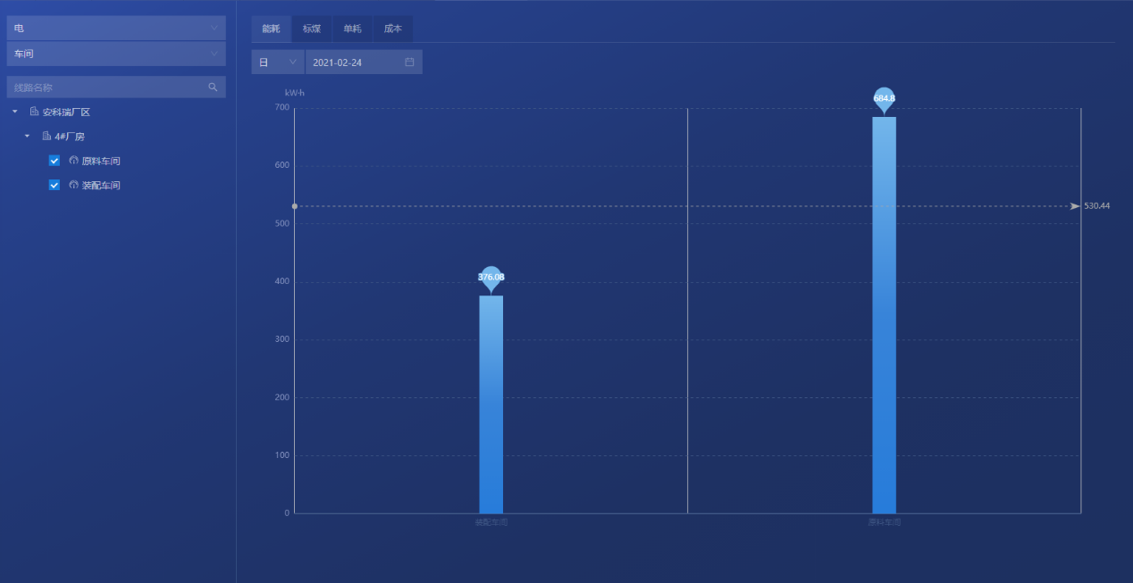 将所有有关能源的能源参数集中在一个看板中,能从多个维度对比分析,实现各个产业线的对比,帮助领导掌控整个工厂的能源消耗,能源成本,标煤排放等的情况。